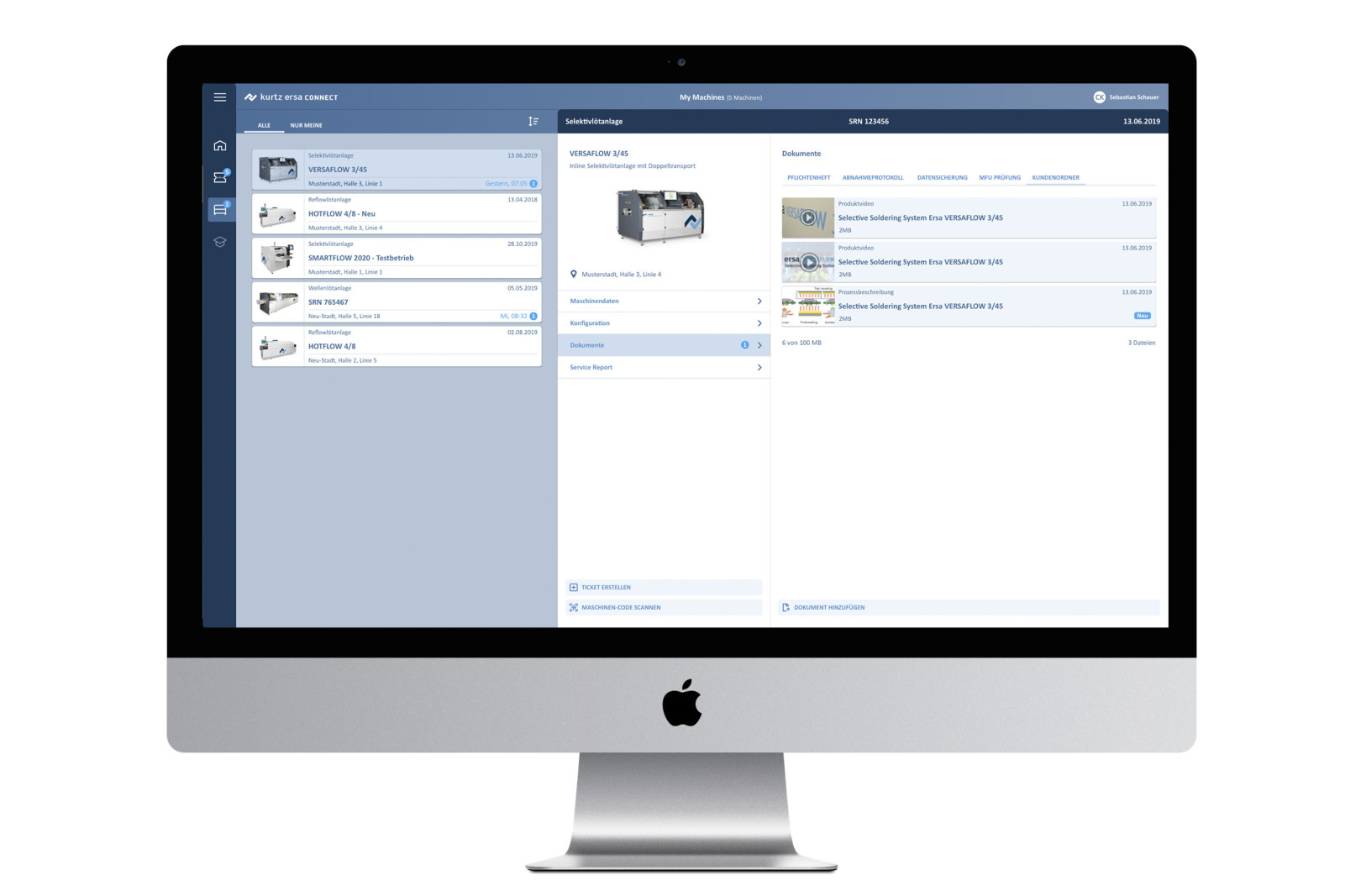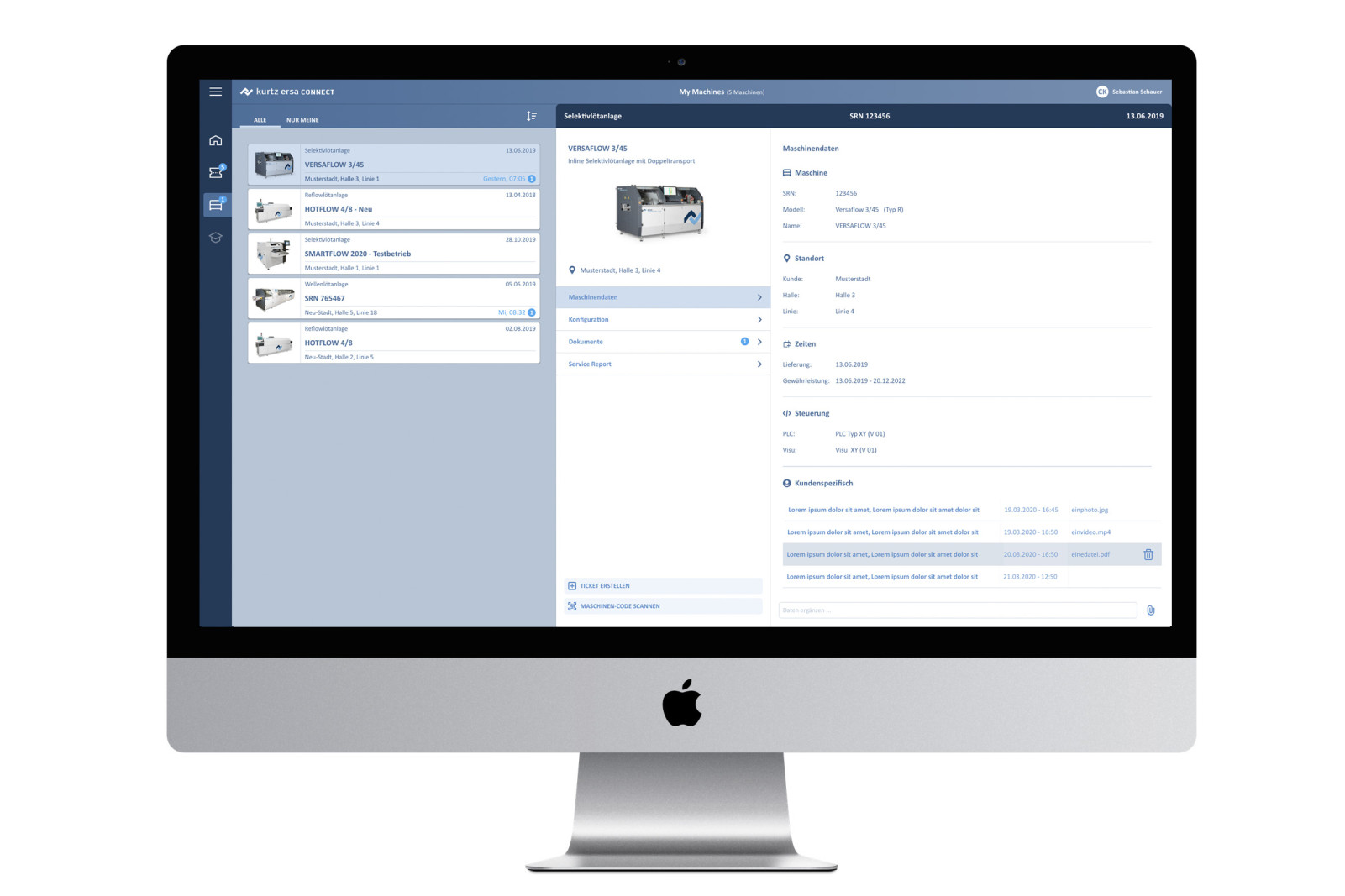 Das Ticketsystem für Service- und SupportAnfragen ermöglicht eine Realtime Diagnose und unterstützt eine eigenständige, zeitnahe Fehlerbehebung. Für die Konzeption und Gestaltung dieser Funktionalität haben wir etablierter Muster aus der privaten Kommunikation herangezogen. Via Chat-Ansicht wird der Dialog zwischen Kunden und Ersa übersichtlich und intuitiv. Zudem haben wir auf die Übersichtlichkeit der Visualisierung und Verschlagwortung der Tickets besonderen Wert gelegt. Dadurch wird eine schnelle Priorisierung der Anfragen möglich. Sowohl der Kunde als auch der Servicemitarbeiter müssen auf den ersten Blick erkennen, welches Ticket sie zuerst übernehmen sollen und was als nächstes zu tun ist. Bedienlogiken, die man aus dem Privatleben gelernt hat, wenn man z. B. Bordkarten in einer App verwaltet oder mit Notifications umgeht, kommen auch hier zum Einsatz.