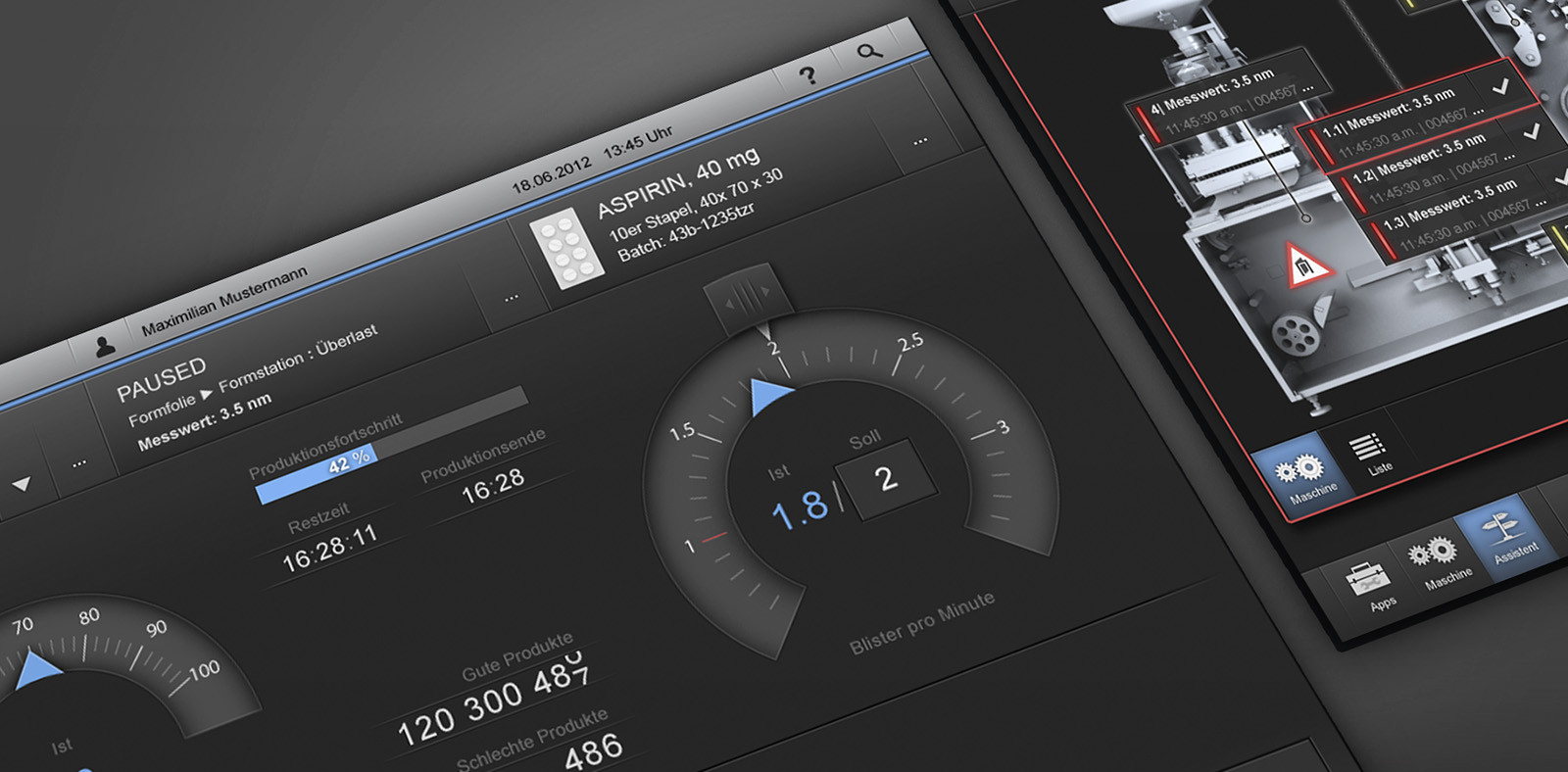 Die Aufgabenstellung umfasste die Gehäuseentwicklung (Industrial Design) für ein neues Bedienpanel sowie die Erstellung eines Usability und User Experience Konzeptes und visuellen Designs für die Softwareoberfläche der Maschinensteuerung.